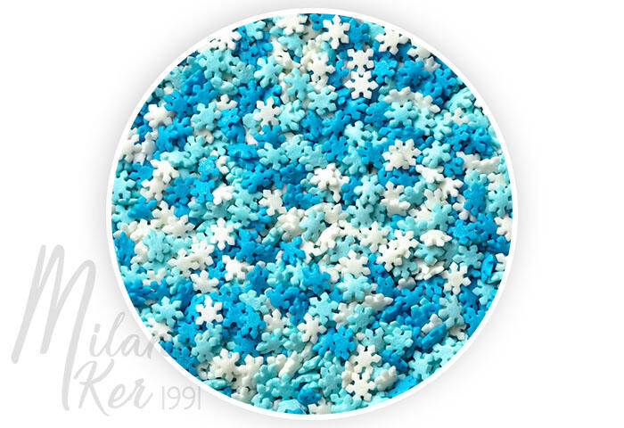 • jégvirág alakú szórócukor, háromféle színben: fehér, világoskék, középkék