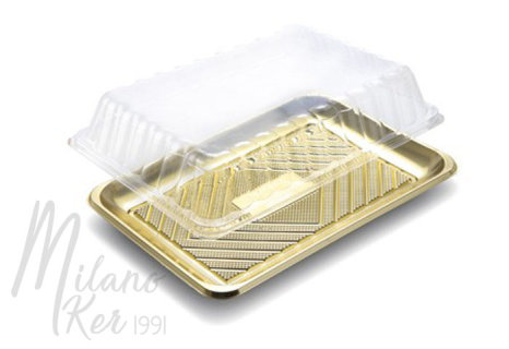 Négyszögletes, arany színű műanyag tálcák