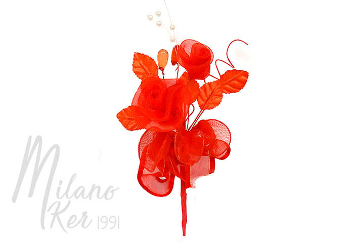 Rózsacsokor piros organza, 1 db - Nem ehető virágdíszek