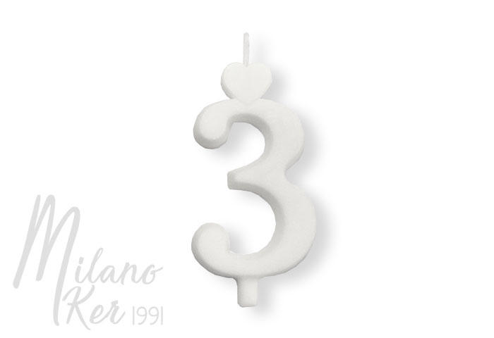 3-as fehér számgyertya, 15 db - Fehér kis számgyeryák