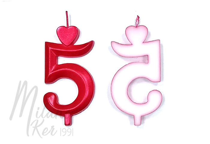 Nagy piros 5-ös számgyertya, 10 db - Piros nagy számgyertyák