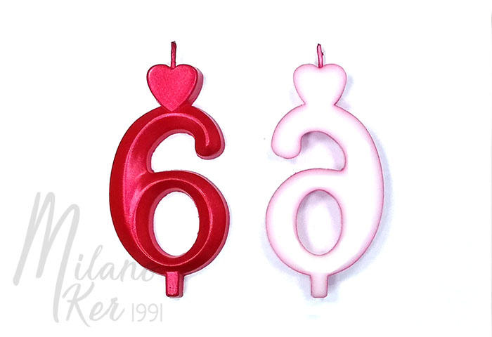 Nagy piros 6-os számgyertya, 10 db - Piros nagy számgyertyák