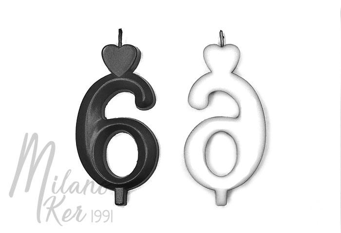 Nagy, fekete 6-os számgyertya, 10 db - Fekete nagy számgyertyák