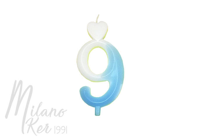 Kék MIX 9-es számgyertya, 10 db - Kék MIX nagy számgyertyák