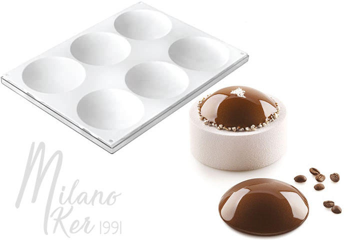 Egy 300x400-mm-es szilikon lapon hat gömbszelet, melyeknek az átmérője 120 mm magassága: 20 mm, térfogata: 117 ml egyenként.