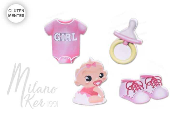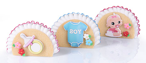 Keresztelői cukor tortadísz, lány, 4 darabos garnitúra